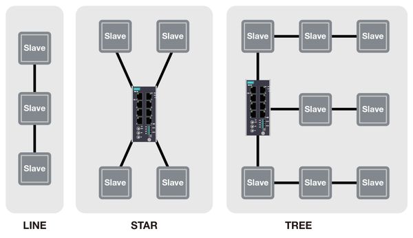 Vậy, làm thế nào bạn vẫn có thể tận dụng tối đa công nghệ EtherCAT mà không bị ràng buộc vào cấu trúc mạng đơn giản nhất và dễ bị tổn thương nhất của nó? Câu trả lời nằm ở việc xây dựng các cấu trúc mạng linh hoạt hơn bằng cách sử dụng các cấu trúc mạng khác nhau. EtherCAT hỗ trợ một số cấu trúc mạng, bao gồm cả cấu trúc cây và cấu trúc sao. Hãy cùng xem xét cách các cấu trúc mạng này giúp xây dựng mạng EtherCAT mạnh mẽ hơn.
