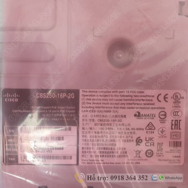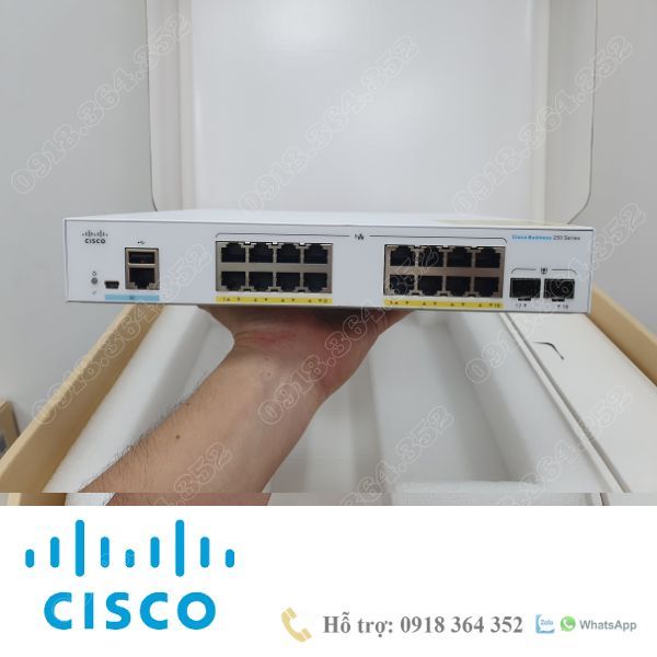 CBS250-16P-2G | Thiết bị chuyển mạch Cisco 16 cổng PoE Gigabit, 2 cổng Combo Gigabit(RJ-45 và SFP)