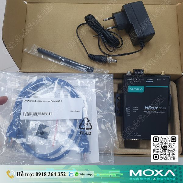 Nport W2150A-EU | Thiết bị chuyển đổi 1 cổng RS-232/485/422 sang Wifi-802.11a/b/g/n WLAN EU band/Ethernet, 12 đến 48 VDC, 0 đến 55°C, Adapter nguồn kiểu cắm EU.